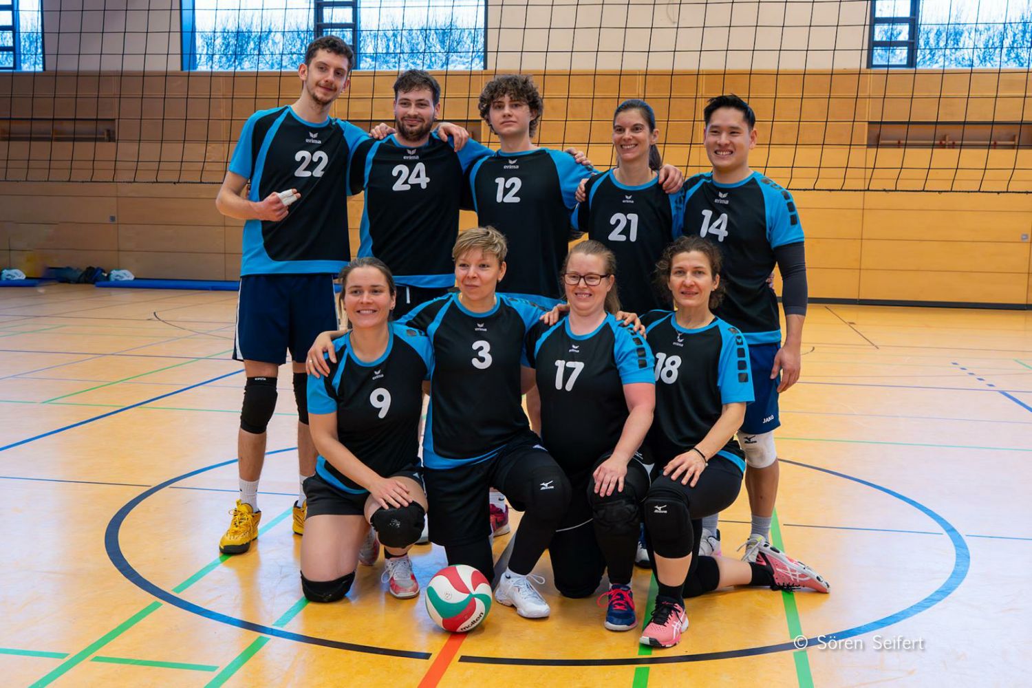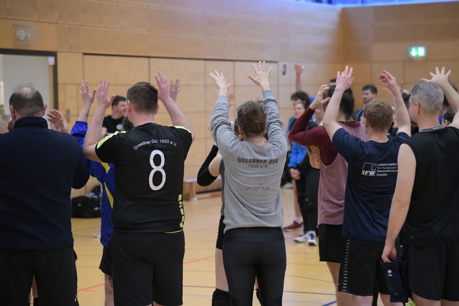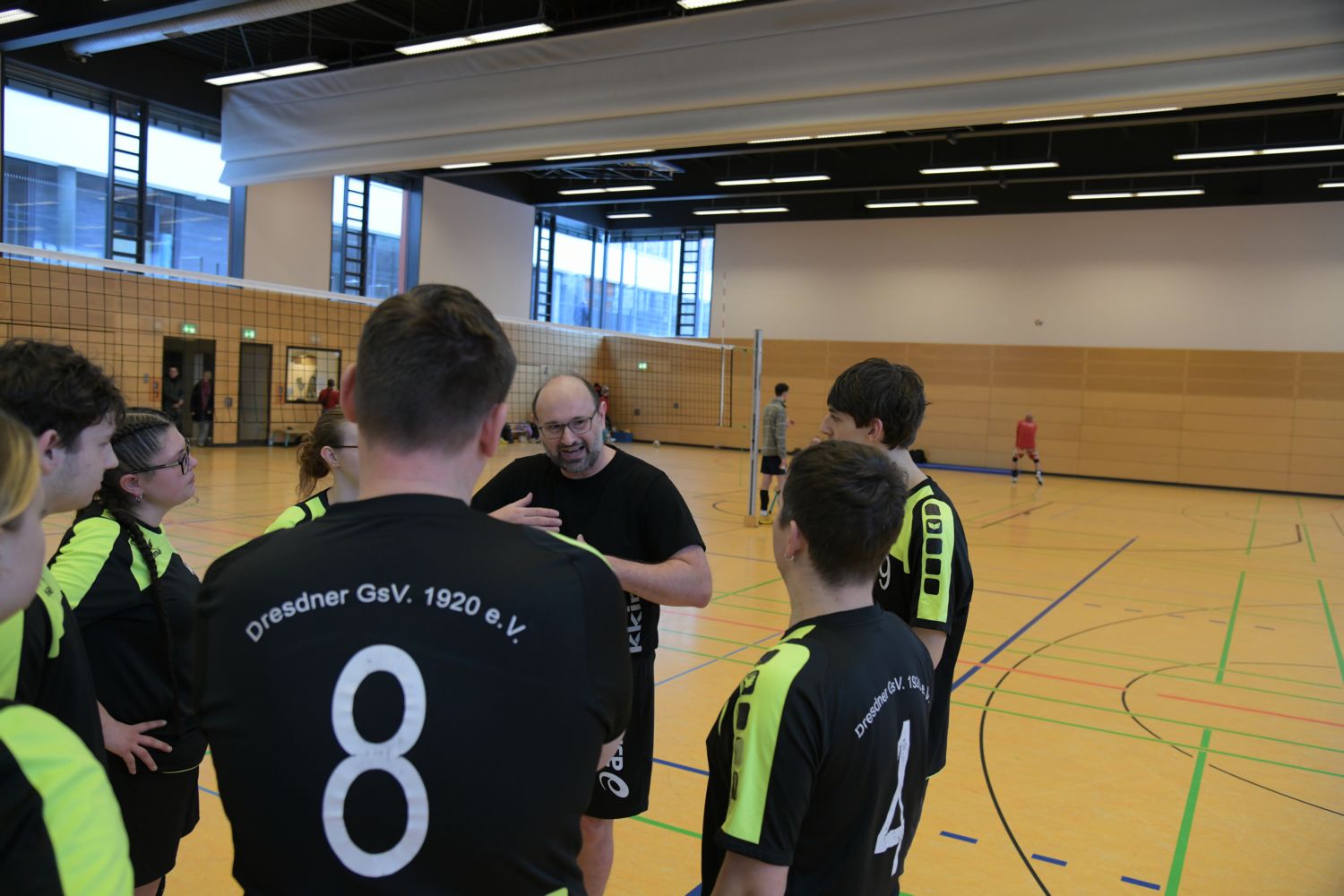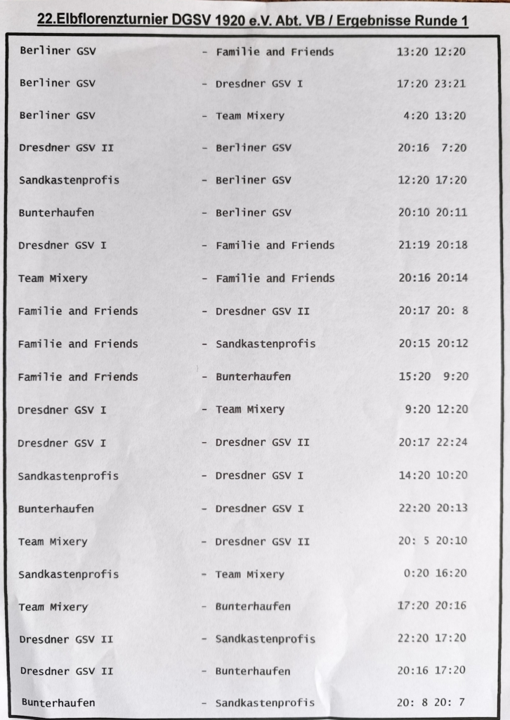 Unser Abteilungsleiter Christian hat erstmal um 9 Uhr in der Turnhalle Gymnasium Dresden-Bühlau eine Begrüßungsrede gehalten, wie es alles nach Regeln und System abläuft. Sieben Mannschaften waren da. Wir spielten also Jeder gegen Jeden. Dresdner GSV 1 hat leider nicht geschafft zum dritten Platz zu kommen. Es war knappe Punkte, aber gleiche Satzpunkte gegenüber Family and Friends, der 3. Platz geschafft hat. Dresdner GSV 2 wurde Sechster und Sandkastenprofis, die gerne im Sommer beachen gehen, hat leider letzten Platz bekommen.