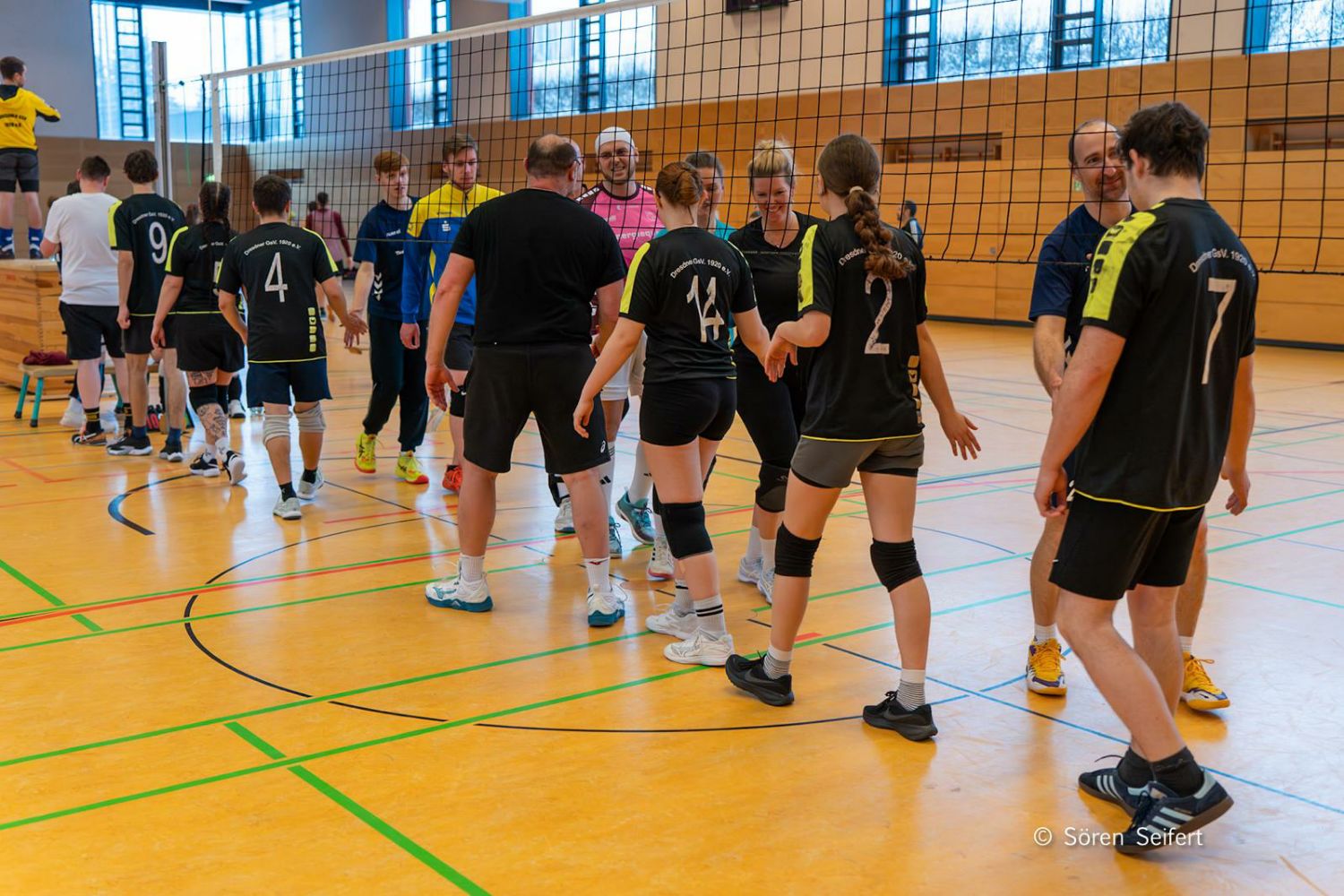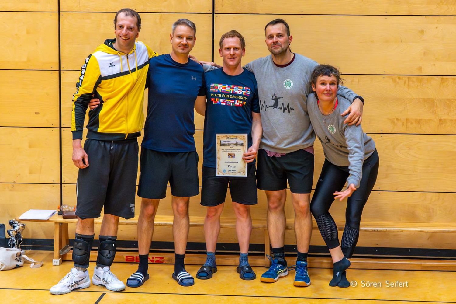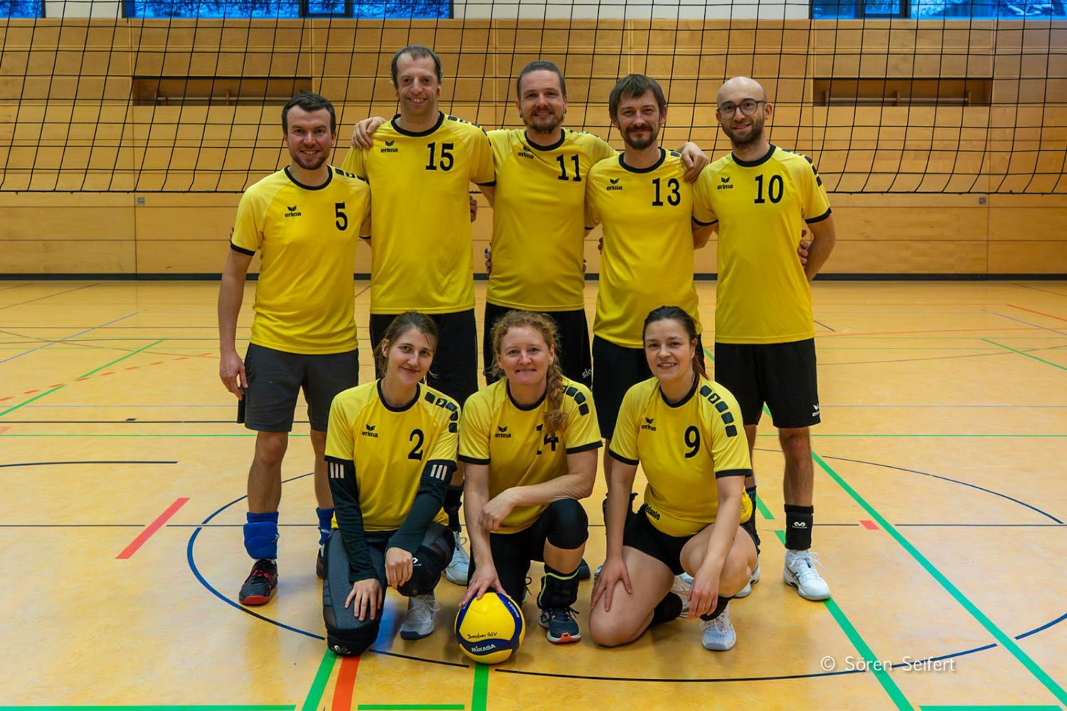 Unser Abteilungsleiter Christian hat erstmal um 9 Uhr in der Turnhalle Gymnasium Dresden-Bühlau eine Begrüßungsrede gehalten, wie es alles nach Regeln und System abläuft. Sieben Mannschaften waren da. Wir spielten also Jeder gegen Jeden. Dresdner GSV 1 hat leider nicht geschafft zum dritten Platz zu kommen. Es war knappe Punkte, aber gleiche Satzpunkte gegenüber Family and Friends, der 3. Platz geschafft hat. Dresdner GSV 2 wurde Sechster und Sandkastenprofis, die gerne im Sommer beachen gehen, hat leider letzten Platz bekommen.