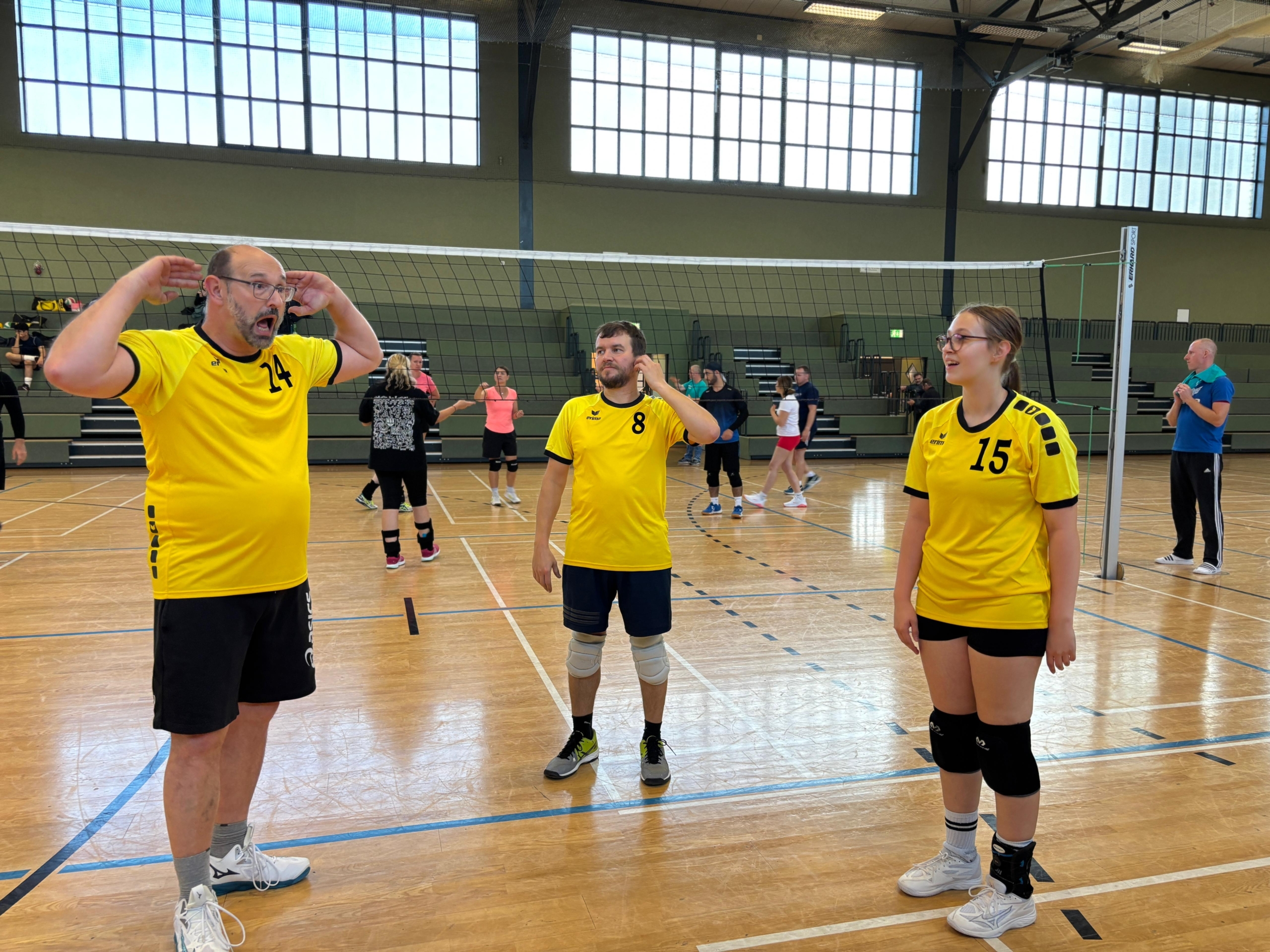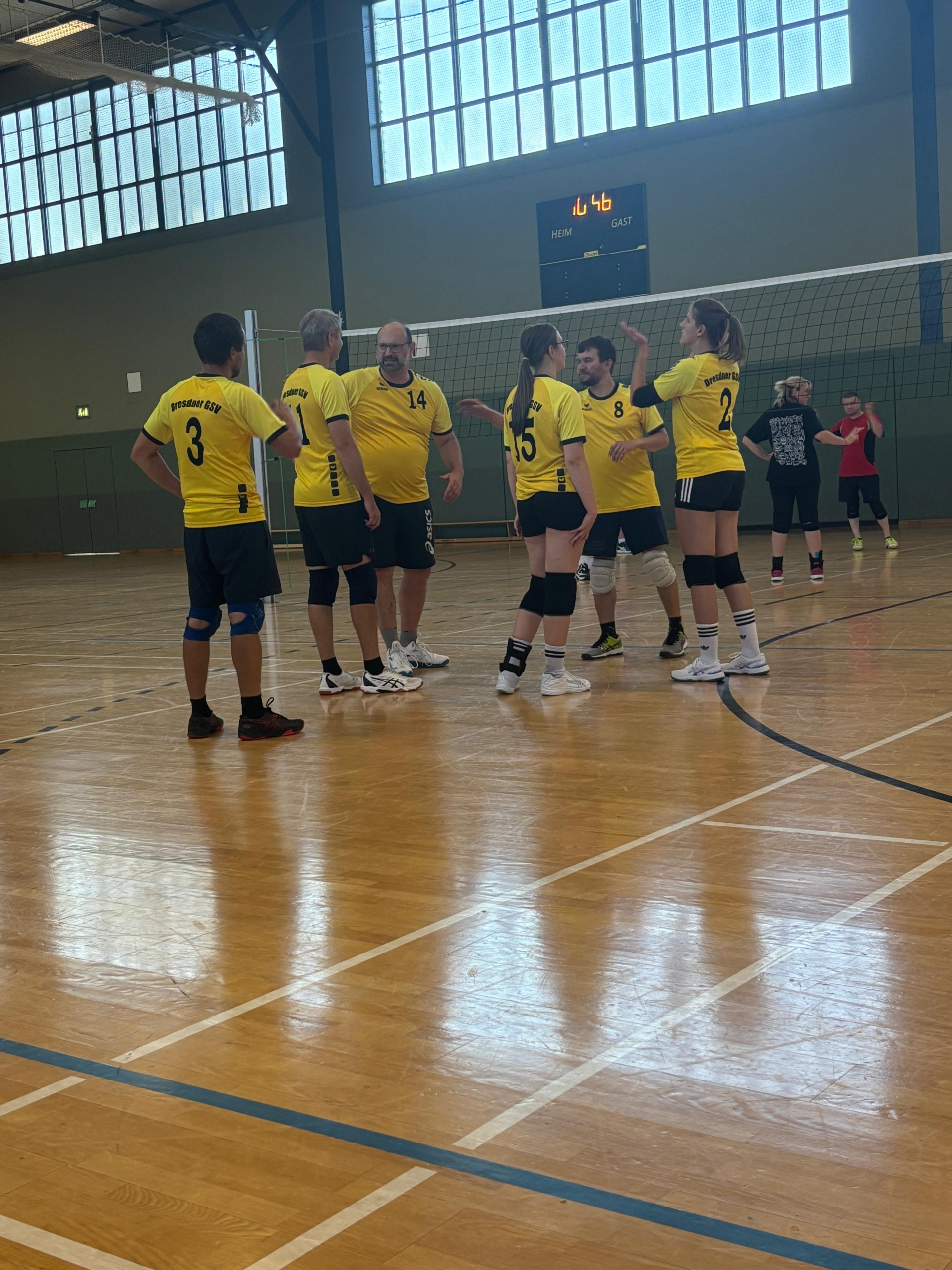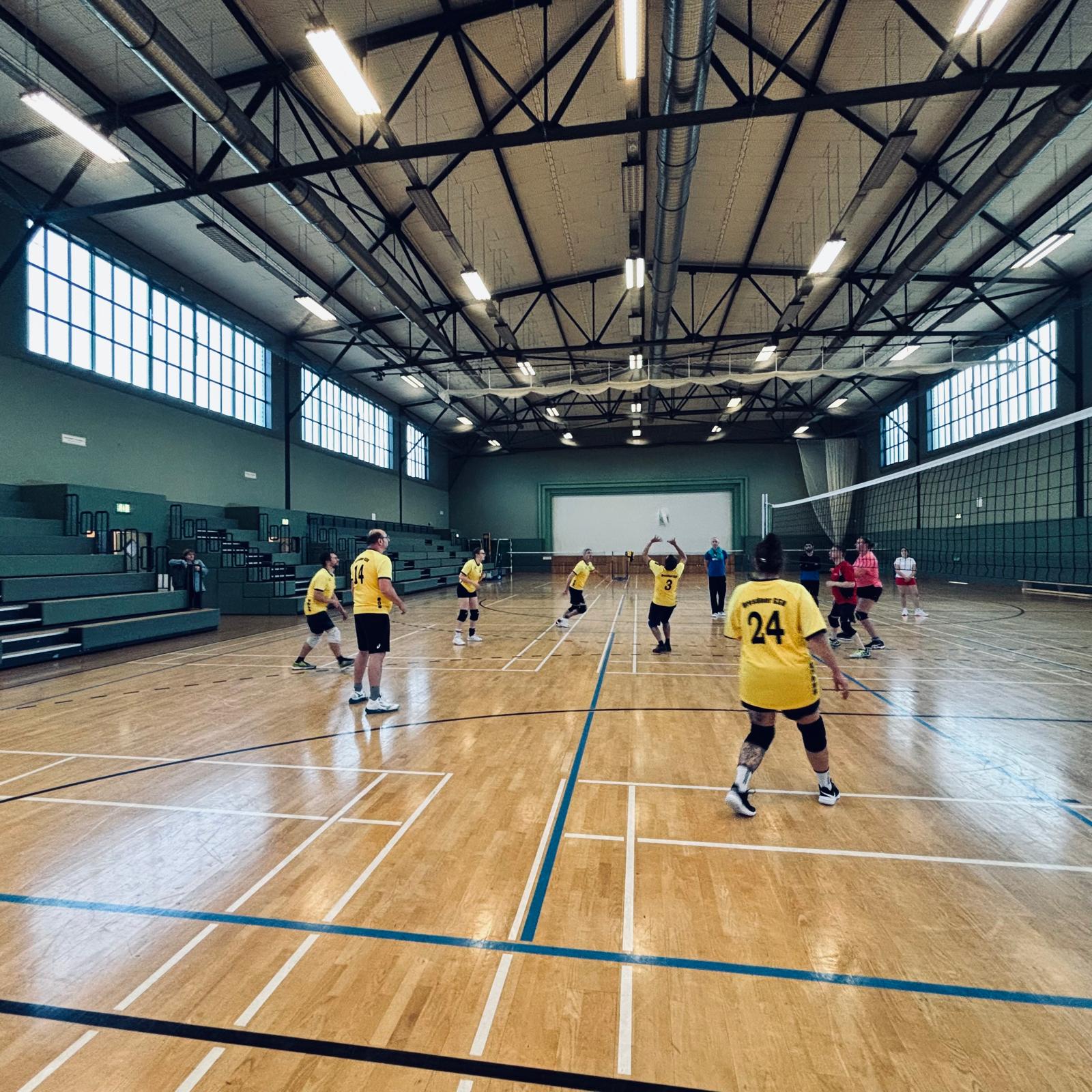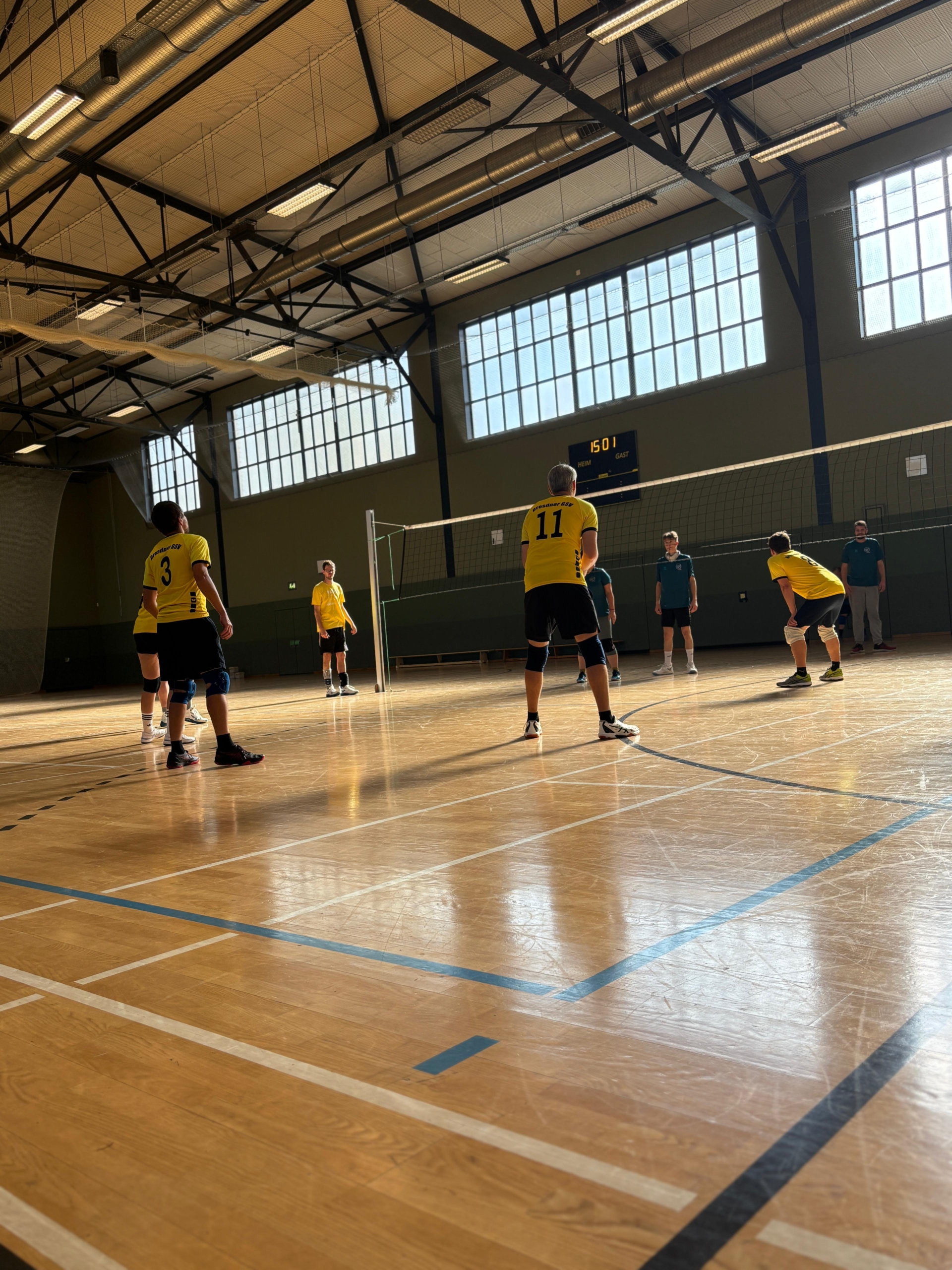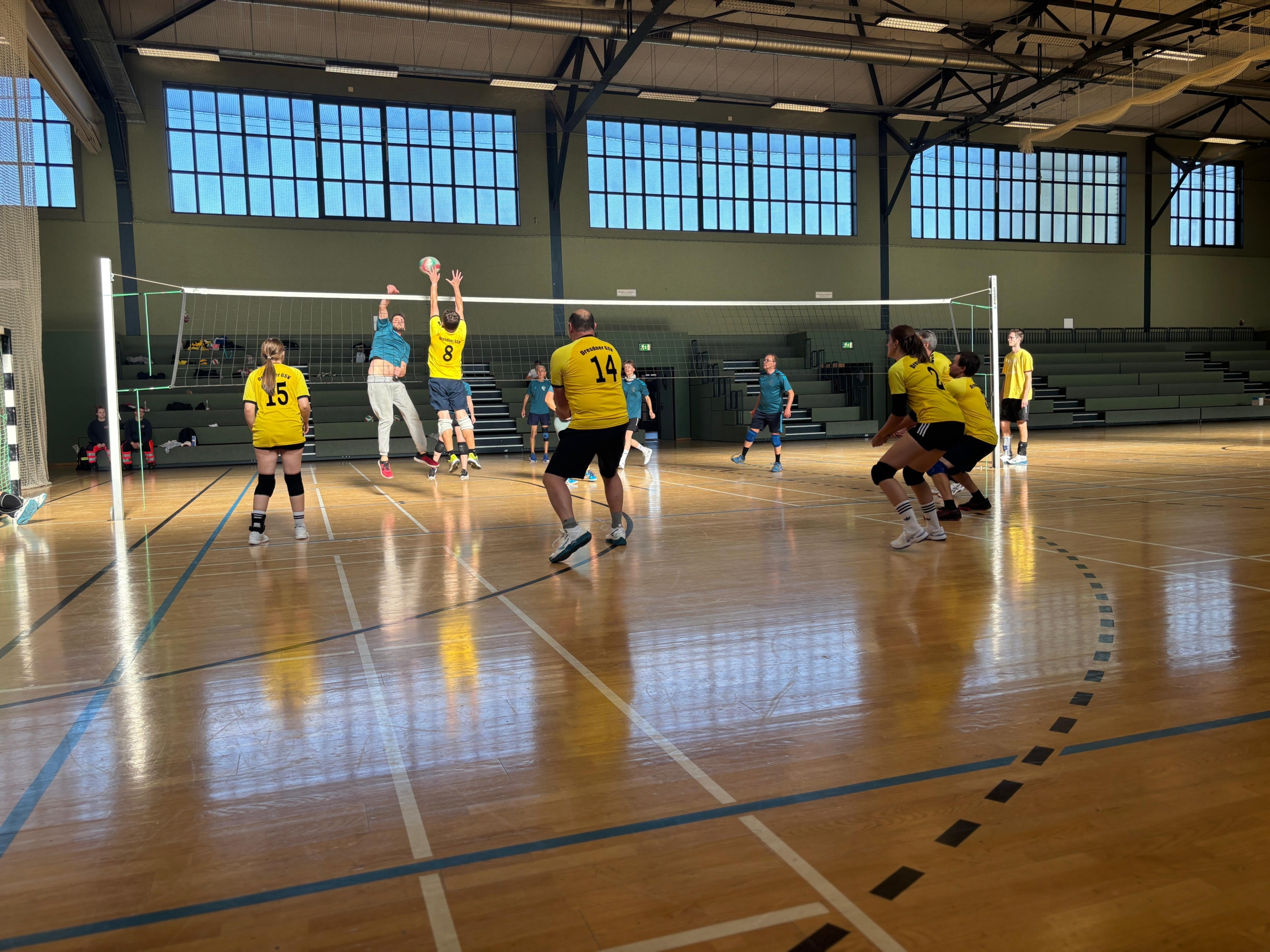 Das Turnier begann ca. 10:30 Uhr und haben den Modus jeder gegen jeder bis 20 Punkte und 2 Gewinnsätze. Wir haben auf 2 Volleyballfeldern in der großen Sporthalle gespielt.