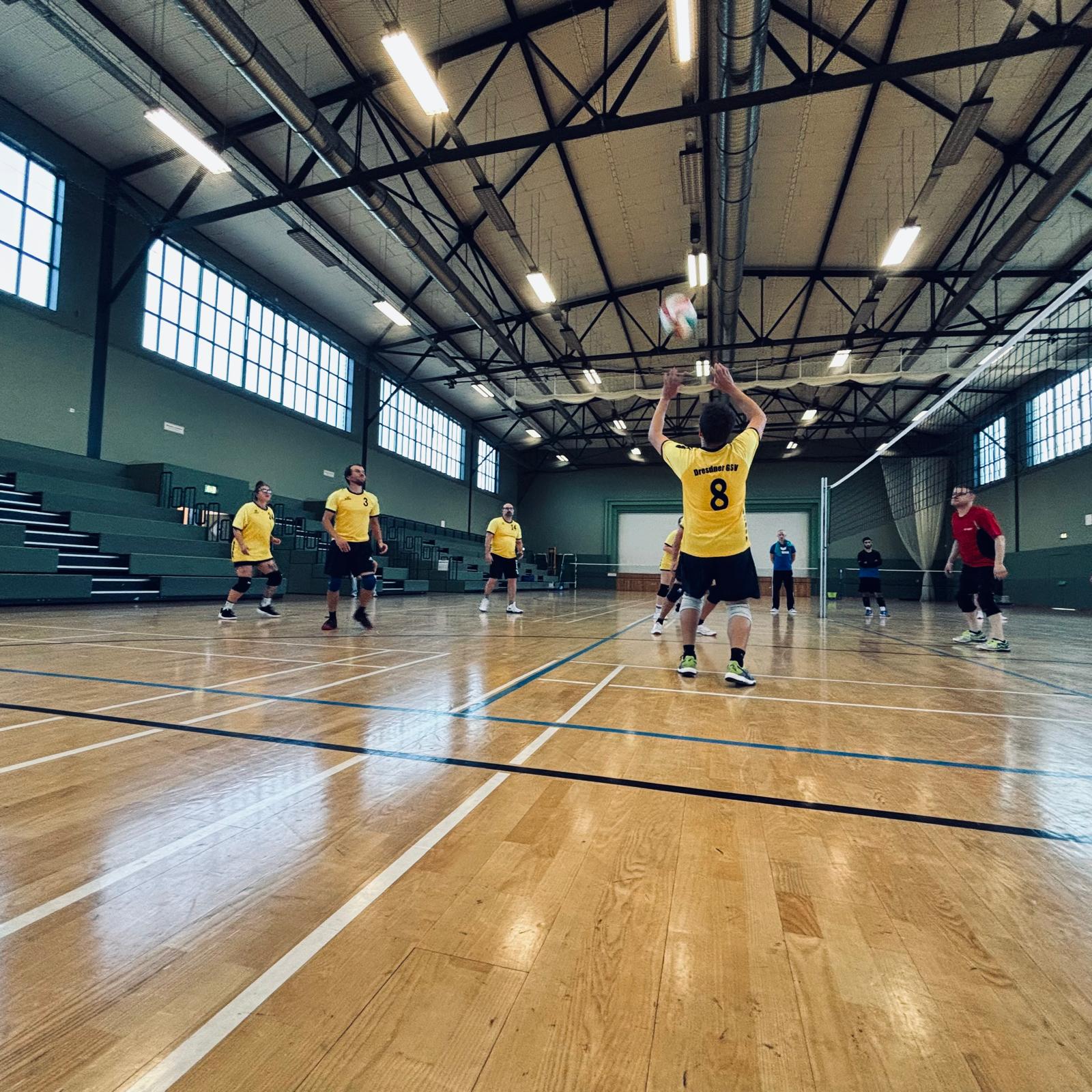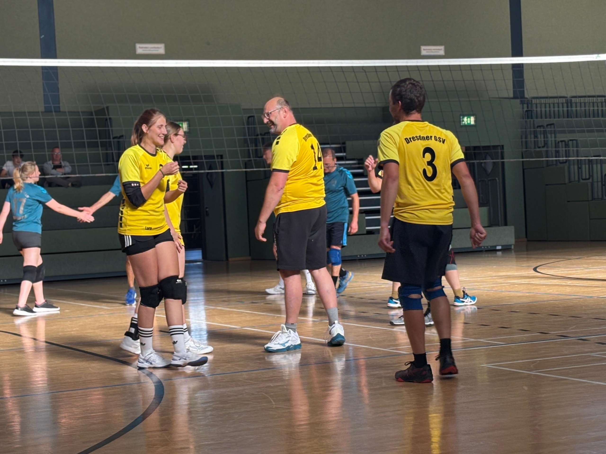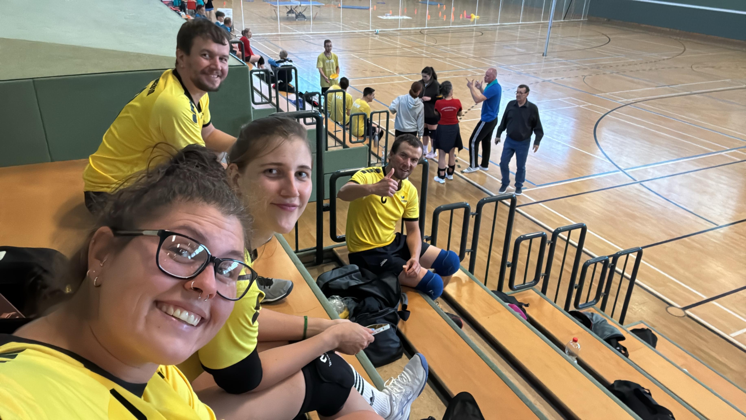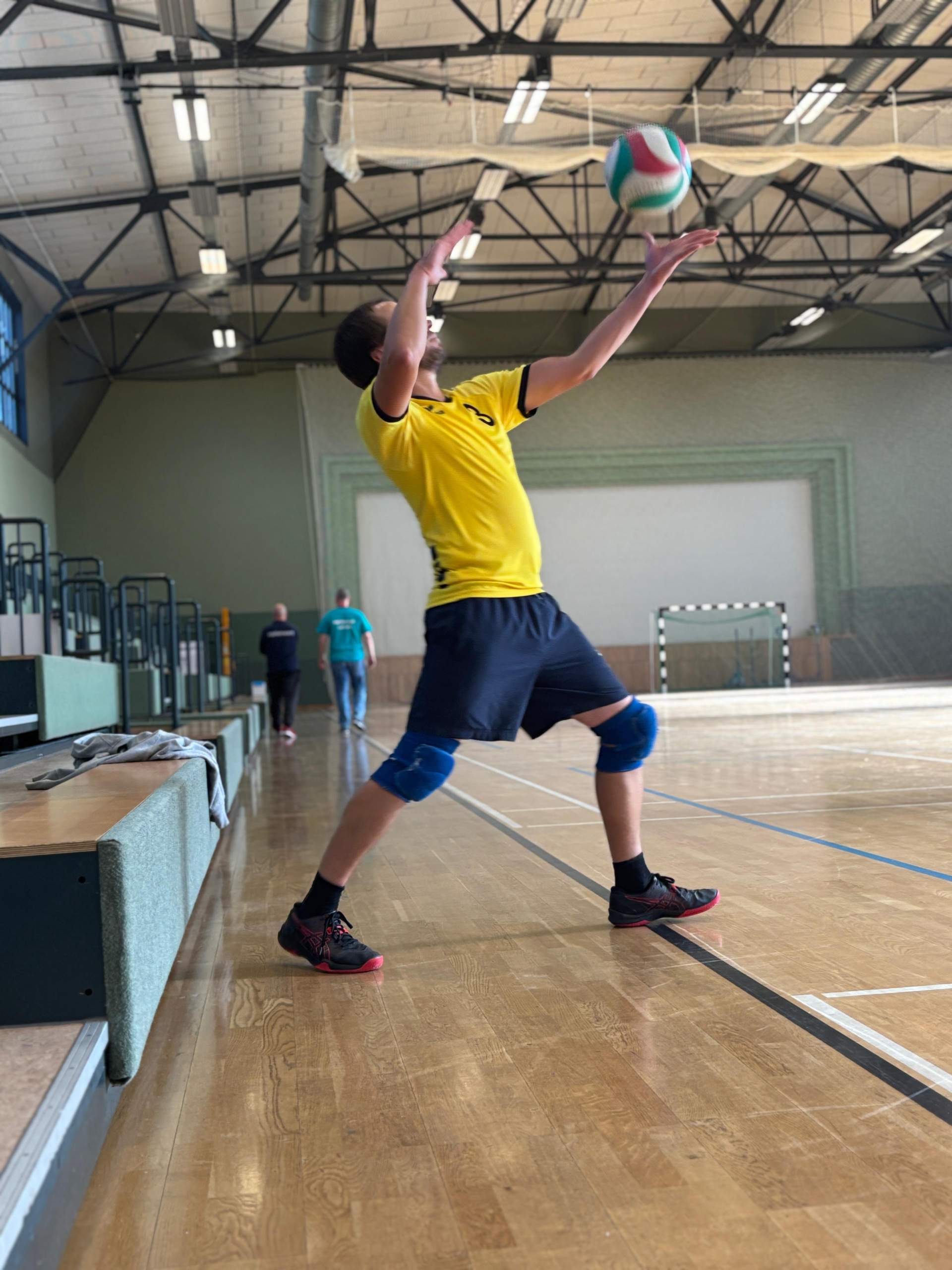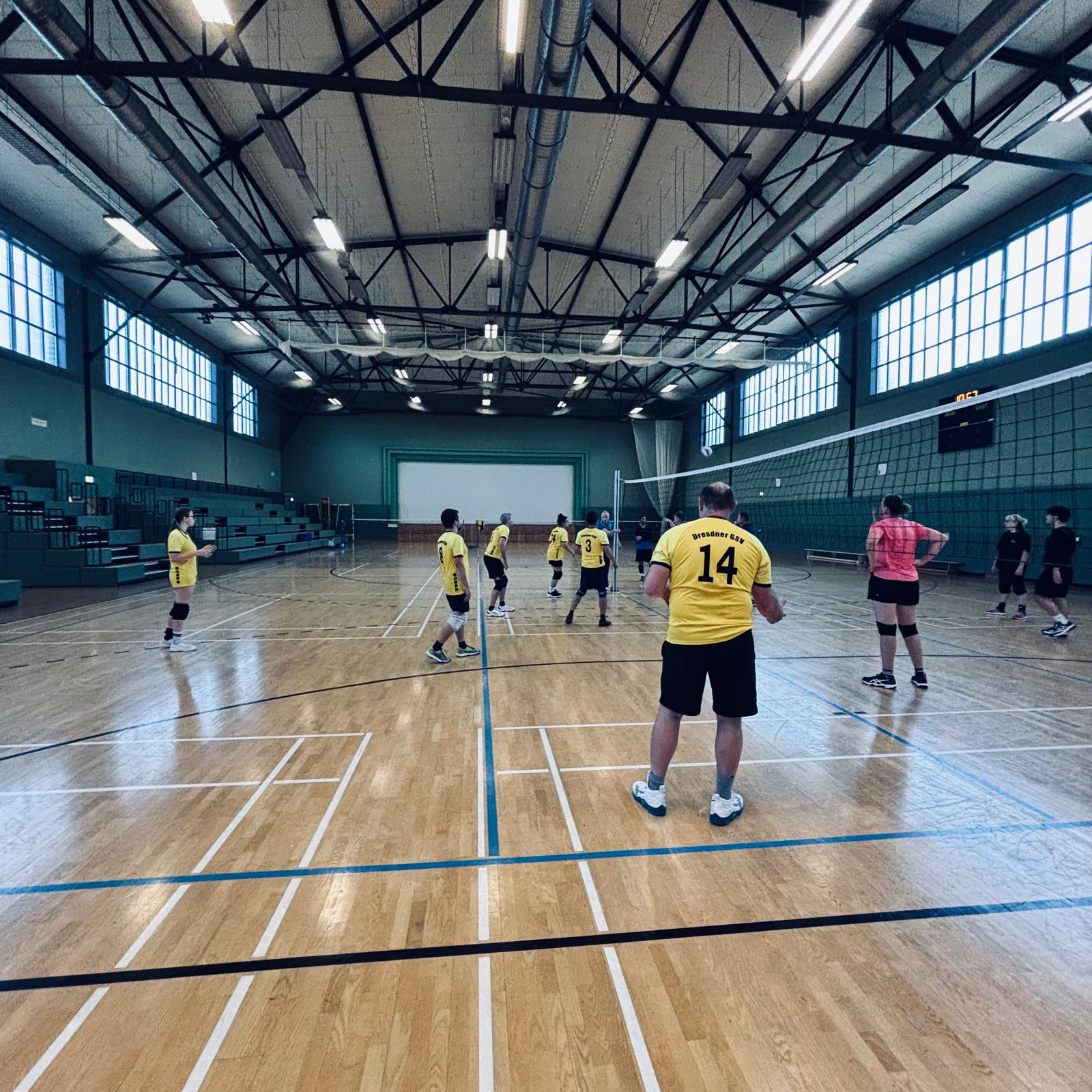 Das Turnier begann ca. 10:30 Uhr und haben den Modus jeder gegen jeder bis 20 Punkte und 2 Gewinnsätze. Wir haben auf 2 Volleyballfeldern in der großen Sporthalle gespielt.