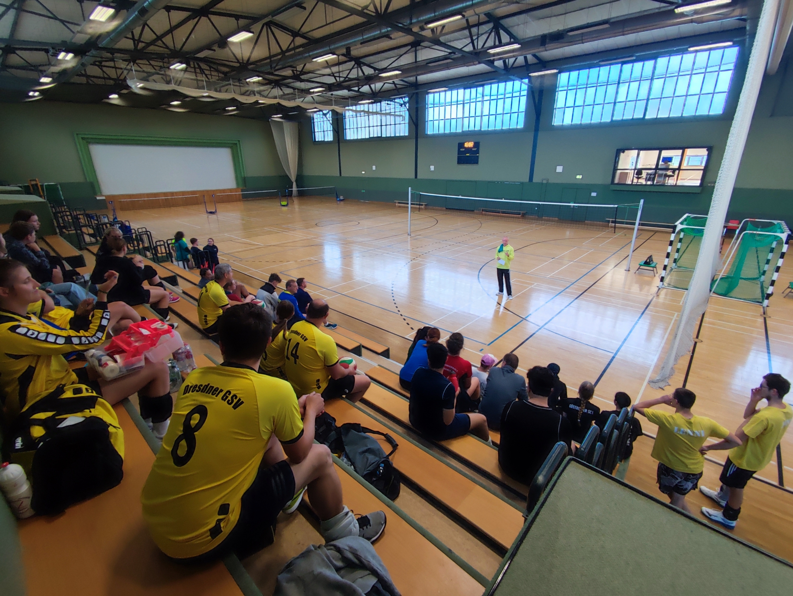 Wir fuhren mit dem zwei Autos ganz früh um 5 Uhr los von Dresden-Elbepark nach Güstrow. Ca. 9:30 Uhr sind wir pünktlich in der Sporthalle angekommen. Um 10 Uhr macht Andreas Kirk eine Eröffnung für das Volleyballturnier und freut sich, das Turnier stattfinden konnten. Es nahmen nun folgende 5 Mannschaften teil: Panackes (Hörend), Inselsee Team (Hörend), Dresdner GSV und GSV Güstrow/Rostock 1 und 2. Dieses Mal haben sich nicht viele Mannschaften gemeldet, denn an dem Tag fand auch Pokalmeisterschaft in Essen statt.